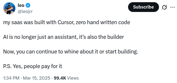 We've seen the effect of using AI without fully understanding the trade-offs happen in the wild. A few months ago on X, someone proudly boasted how the Cursor code editor built their product without them writing any code: