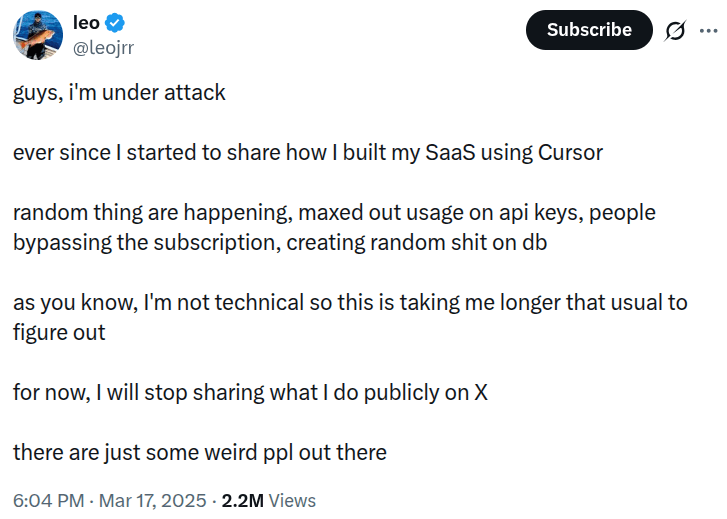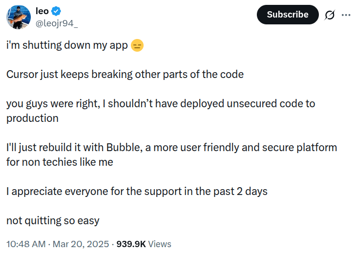 This scenario is likely an extreme case of the dark side of vibe coding, and it’s not an indictment of using Cursor, Claude Code, or any other similar tool. I’m sure there are also plenty of success stories that we don’t hear about. But it’s not uncommon to see AI-generated code create all sorts of chaos if we’re not cognizant of the trade-offs.